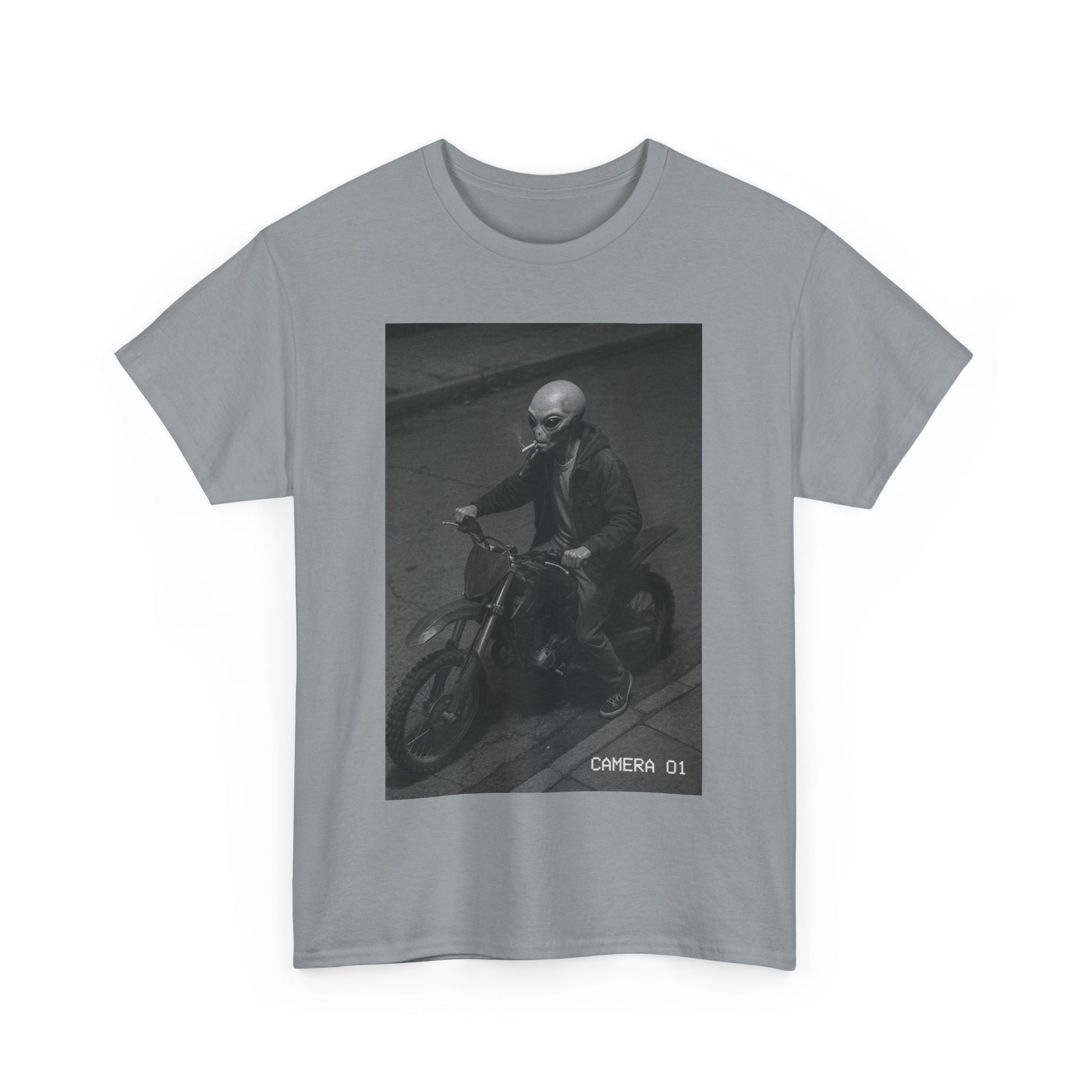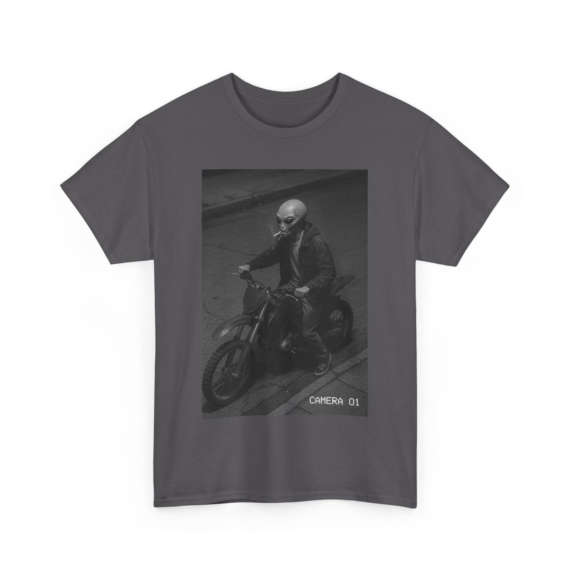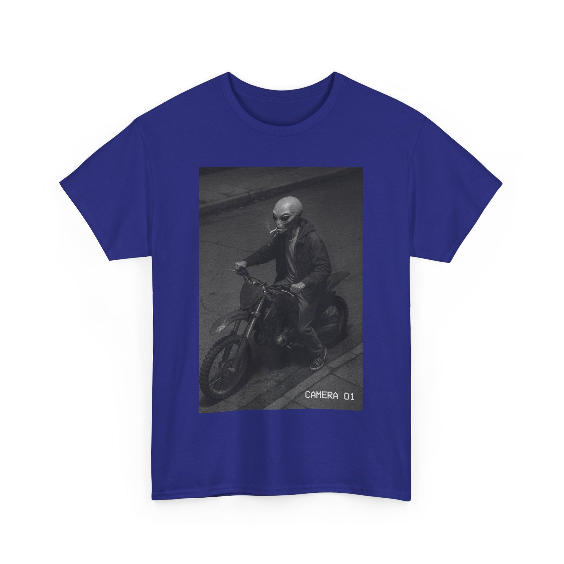 Cosmic Probation captures the energy of a being who violated intergalactic law, stole a dirtbike, lit a cigarette, and decided Earth was his rebound planet. It’s unclear whether he’s running from justice, responsibility, or just vibes — but one thing’s certain: you’re not stopping him.
