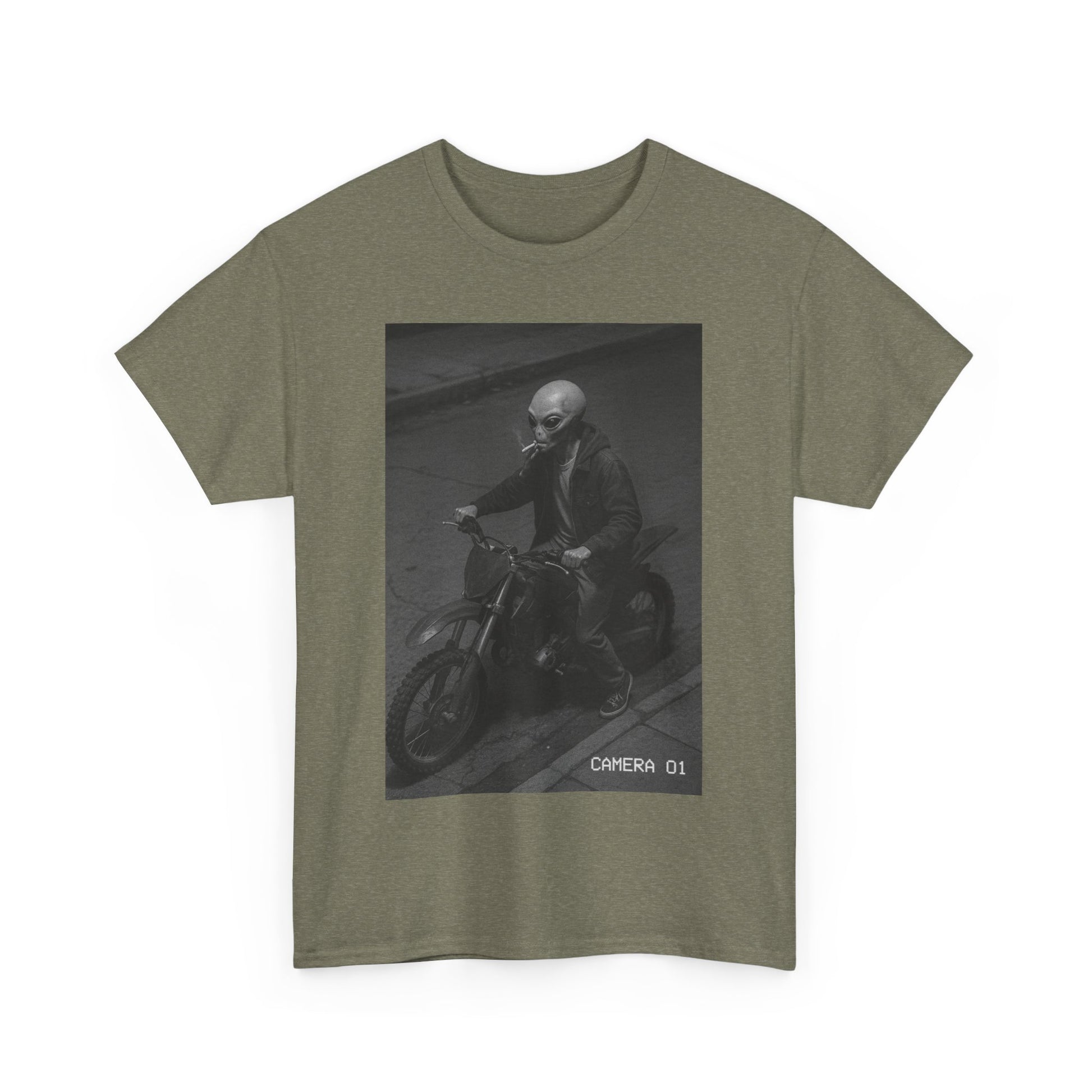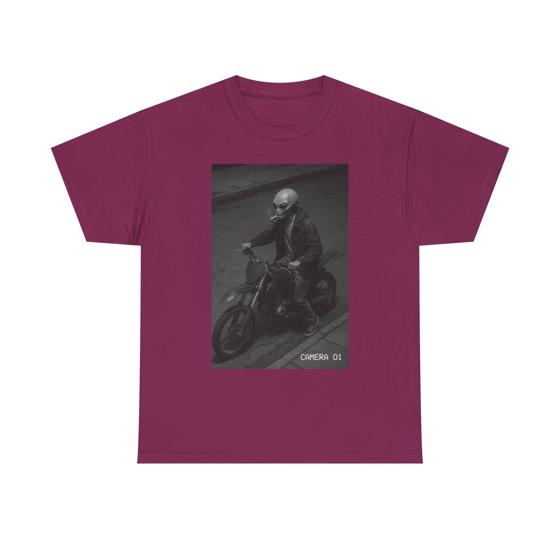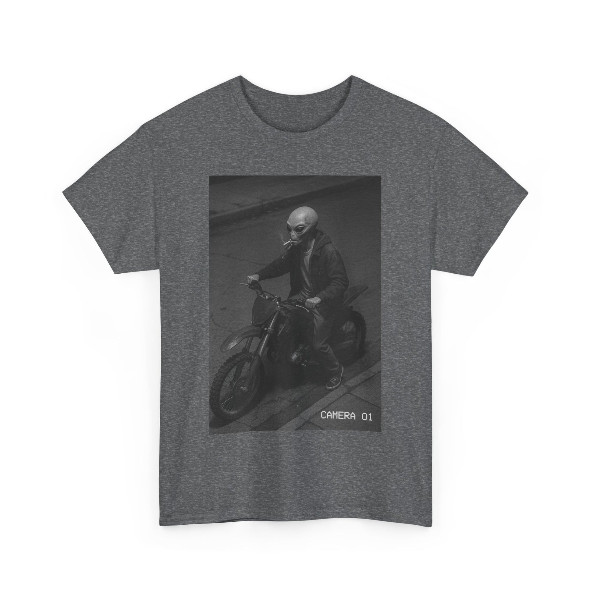 Cosmic Probation captures the energy of a being who violated intergalactic law, stole a dirtbike, lit a cigarette, and decided Earth was his rebound planet. It’s unclear whether he’s running from justice, responsibility, or just vibes — but one thing’s certain: you’re not stopping him.
